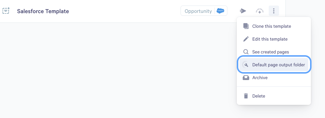 For any template, you can also choose a default page output folder by selecting More actions (the three dots). Whenever you create a new page, it will automatically appear in the selected output folder.