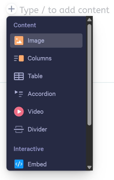 Step 2. Head to your Qwilr Page. In any block, place your cursor where you want the image to appear. You should see a + symbol appear next to the cursor.