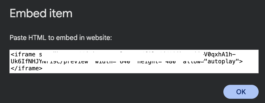 Note: To embed a PDF, you'll need to have it hosted on a file hosting service like Google Drive or Dropbox. The PDF needs to be publicly available - private content can't be embedded.