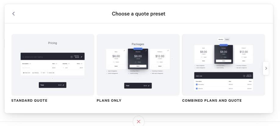 You'll be prompted to choose a format for your quote. Depending on the quote you're building, you can mix and match two styles of presentation (click the links below to learn more):