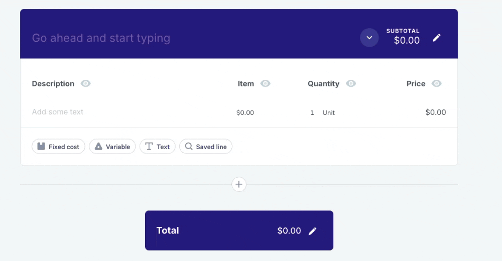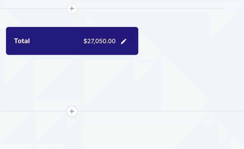If you want to add a new section to your quote, click the + icon. You can add a new section at the end of the quote, or between any two existing sections.