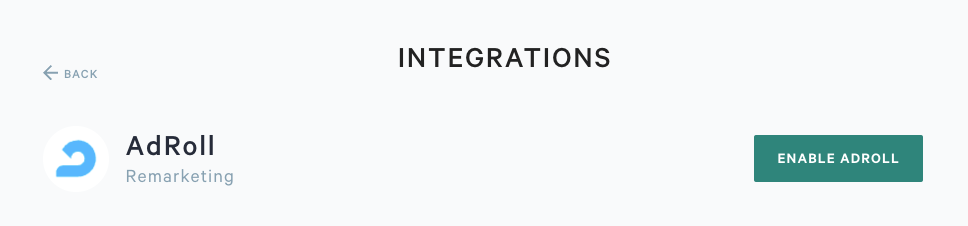 Step 2. Choose AdRoll from the list of integration options. Then click Enable Adroll.
