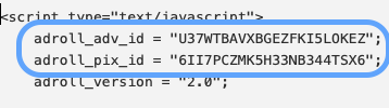 You'll need your Advertiser ID and Pixel ID, which are found in the code. Copy these two numbers (everything between the quotation marks).