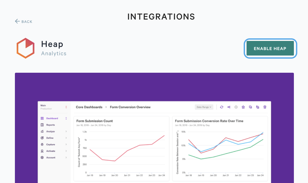 As soon as you've enabled the integration, Qwilr will start automatically including your Heap Analytics tracking script on all pages. From there, you'll be able to track your Qwilr activity along with your other data in your Heap Analytics account.