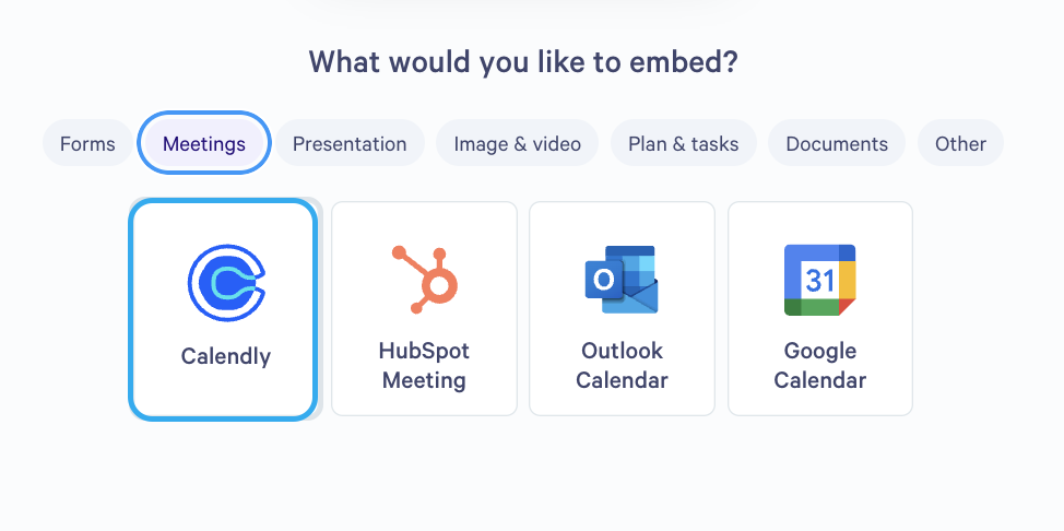 Step 2. Select Meetings, then Calendly from the list of available options.