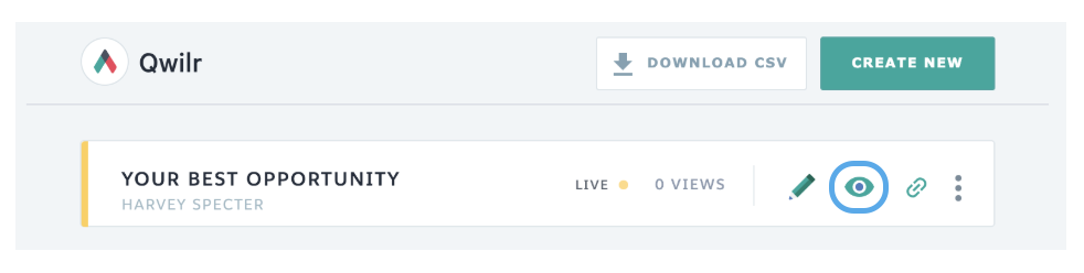 Clicking the Preview icon lets you see the public version of the Qwilr Page that your client sees.