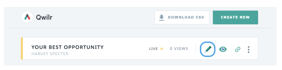 If you click the Edit icon, the page opens in Qwilr so you can make changes. Qwilr saves your changes automatically and you can see them in the page preview right away.