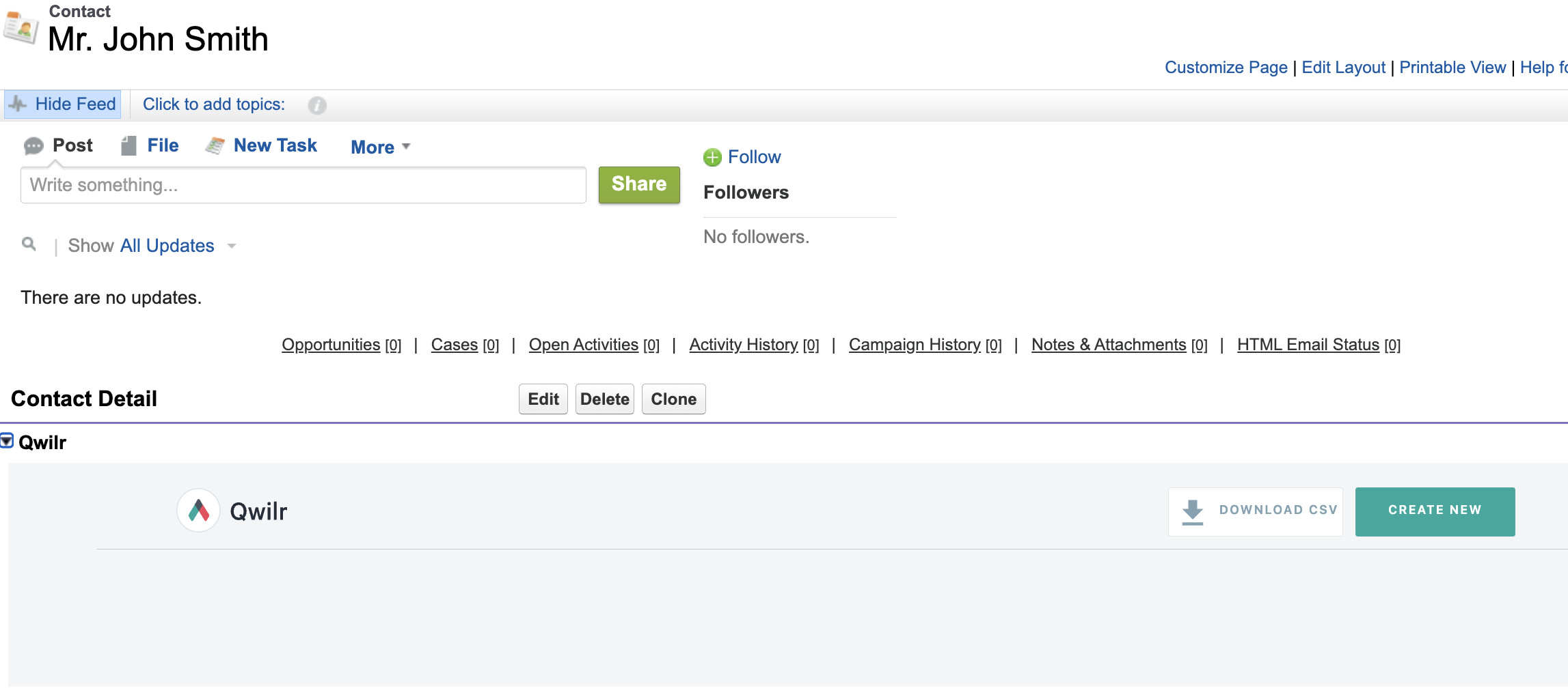 Note: Now that you've installed the Qwilr app, you can add the Qwilr widget to page layouts in your Salesforce Lead, Contact, Opportunity, and/or Account objects.