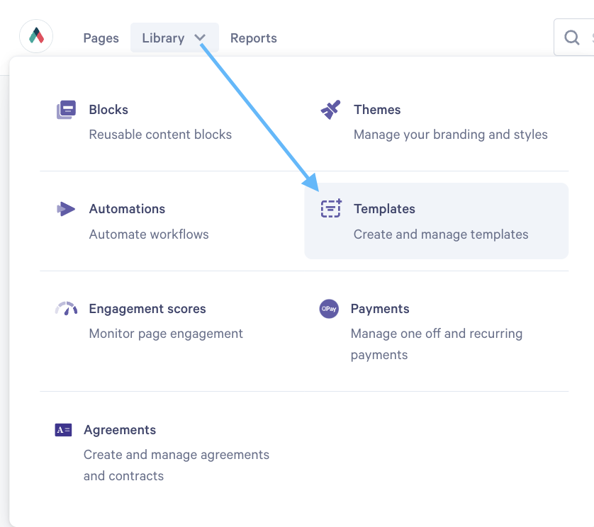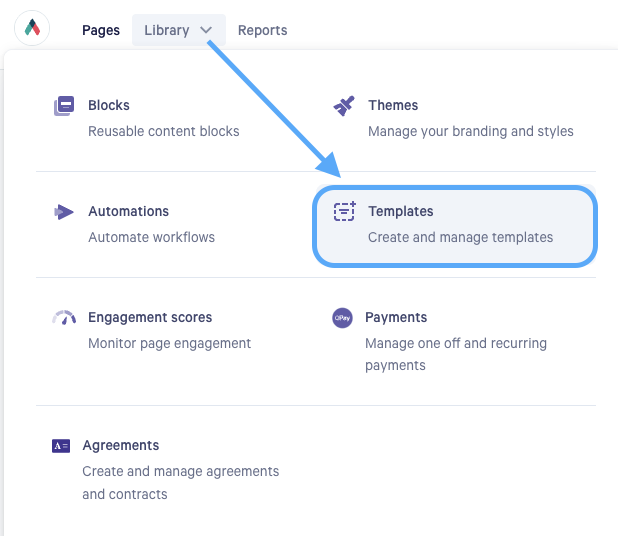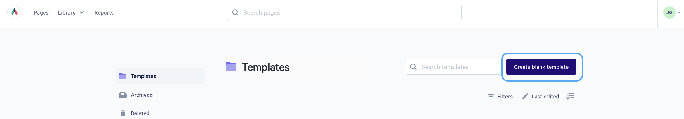 Step 1. To create a new blank template, click Library in the top left of your screen, and select Templates. Click the create blank template button