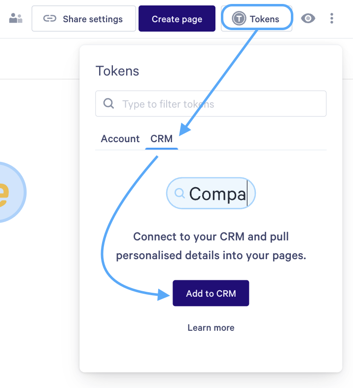 Step 3. A list of available tokens will appear. It has two tabs. Click on the CRM tab, and then click Add to CRM.