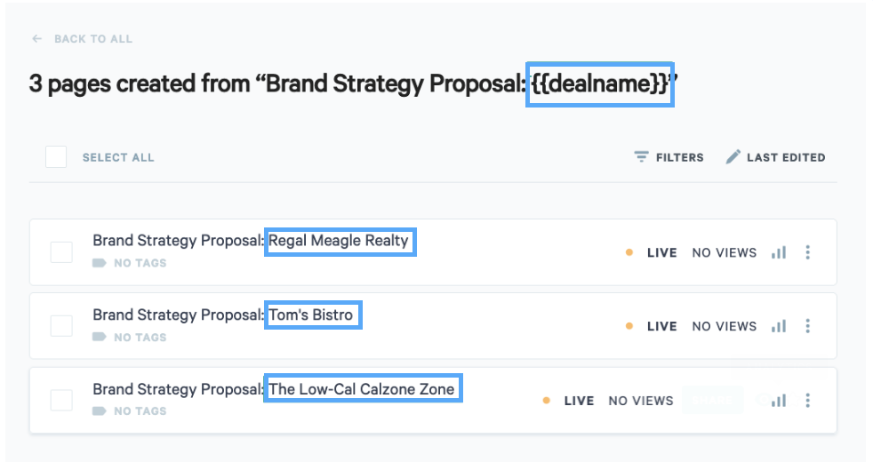 Once you've associated the records, you should see the new token options appear in your Qwilr list within a few minutes.