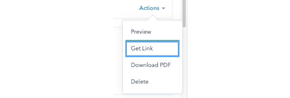 Alternatively, you can get the link any time from within the Qwilr widget. Click Actions and then choose Get Link.