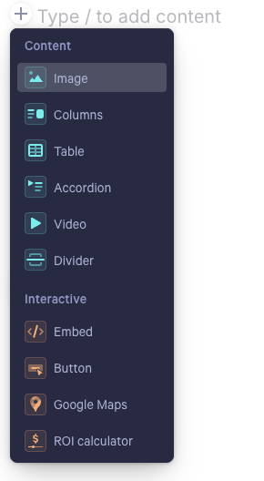 - Unsplash Collections: Qwilr contains a large stock image library from our partner Unsplash, which you can use in your pages royalty-free.