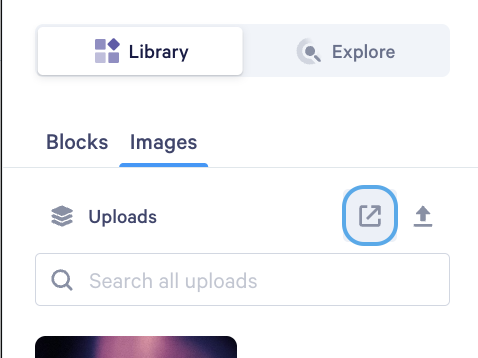 Either action will open your library in a sidebar. You'll find your saved blocks here as well as your images. Each section has a tab, so be sure to click on Images.