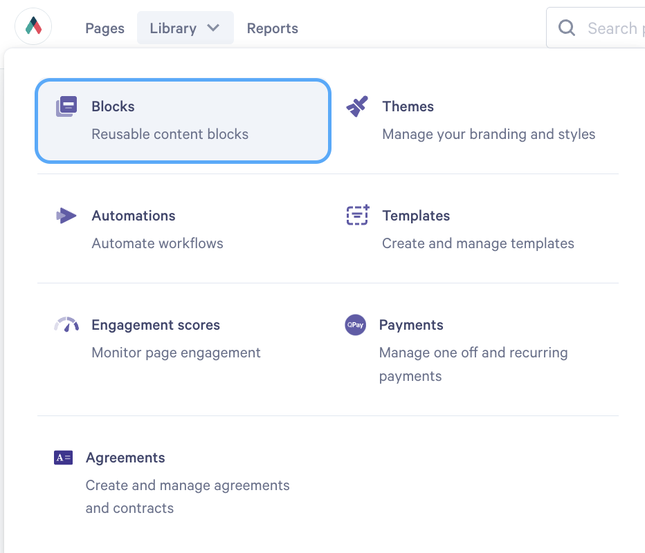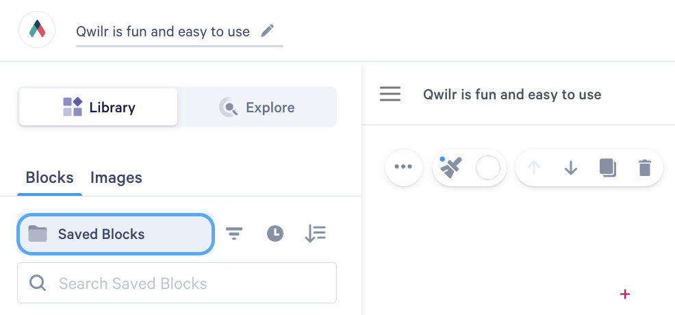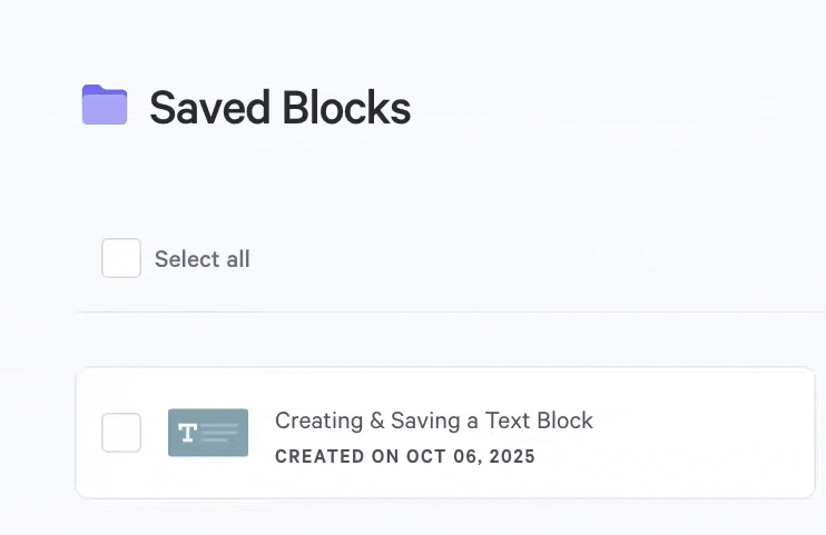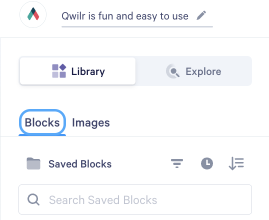 Your saved Blocks are stored in a Library, which is easy to access and maintain.