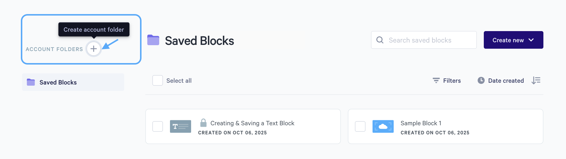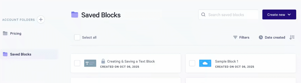 As you save more and more blocks, wouldn't it be great to group them into folders so your team can locate them easily? You can do this from the dashboard view of your library!