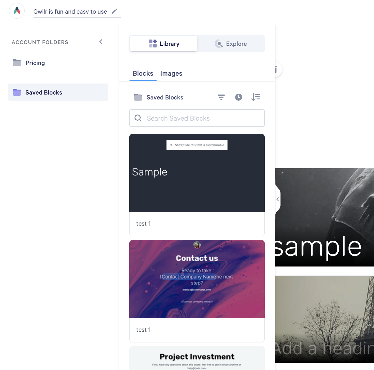 Qwilr has two access points for the Library - they're useful for different tasks: