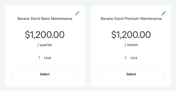 If you're using plan cards for your quote, you'll be able to choose the billing frequency. Click on the unit price to get started.