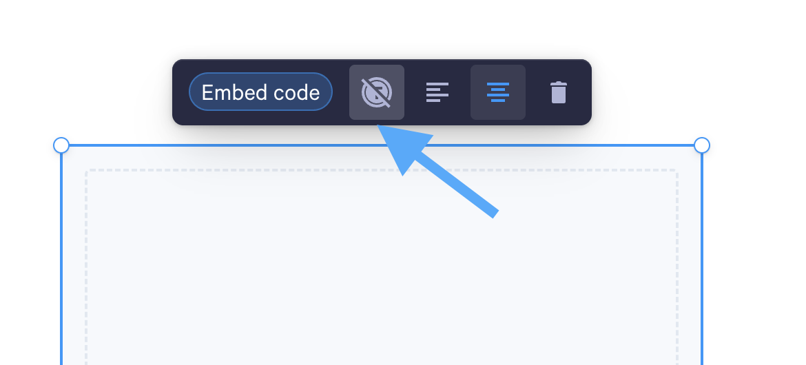 A placeholder will appear. You can drag its corners to resize it as needed. A toolbar also appears at the top of the placeholder, where you'll access your account Token list.