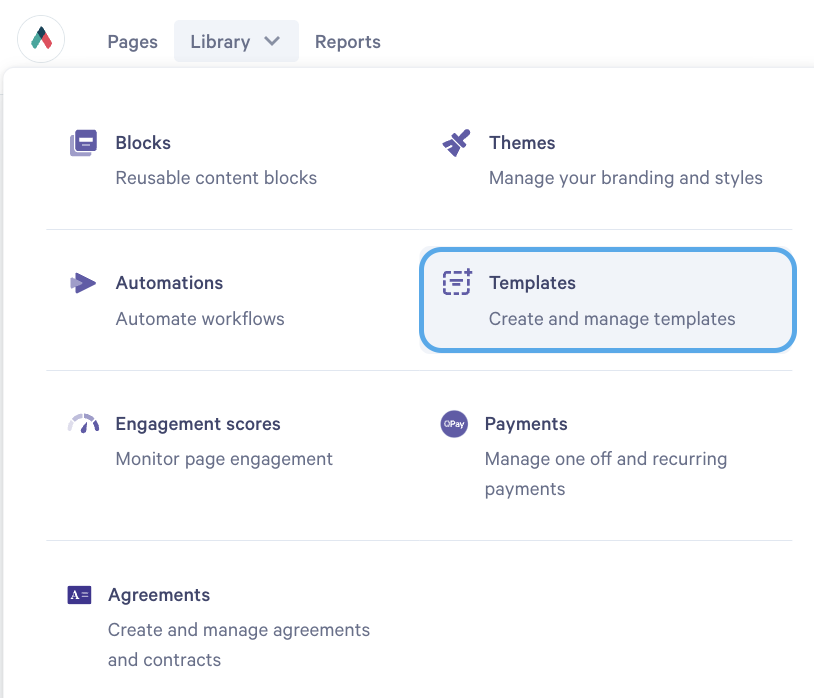 Note: Maybe you already have a Qwilr page you've created that you want to see as a template. After you create a Qwilr Page, while editing it, you can head to the top right corner and click the Convert to Template icon.