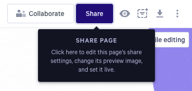 Step 1. Click the Share button for the page, either from within the editor or from the dashboard.