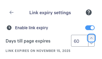 Step 3. From there, click Enable Link Expiry. Then either type in the number of days, or use the arrows. There's no limit to how many days till page expires, the number on the image is shown as a sample only.