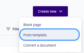Step 3. Head back to Qwilr and open your template library. From the dashboard, click the Create New button, and then choose From Template.