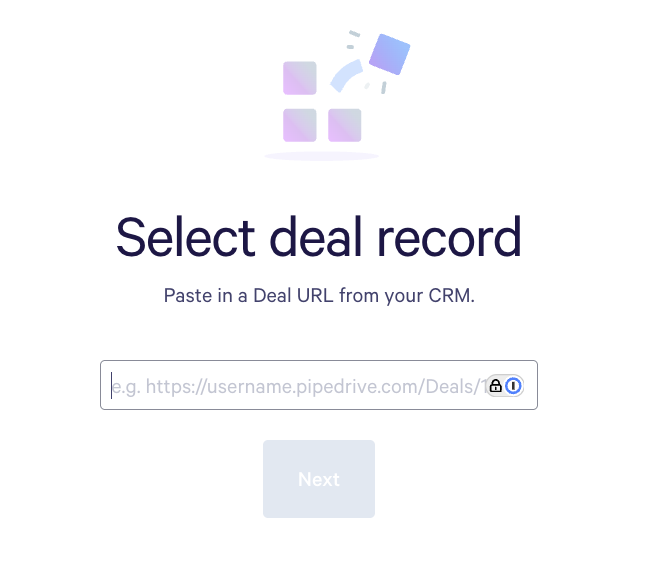 Step 5. A field will pop up. Paste in the URL of your Pipedrive CRM record, and click Next.