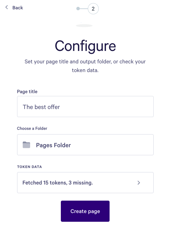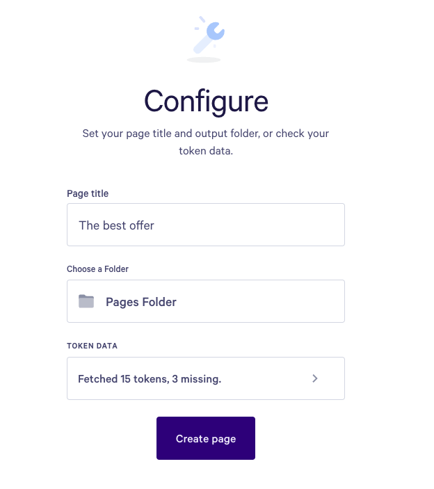 Step 6. From there, you'll add a unique page title and choose a folder in your account to place the finished page in. You'll also see a confirmation that Qwilr can access all the Pipedrive CRM token data.