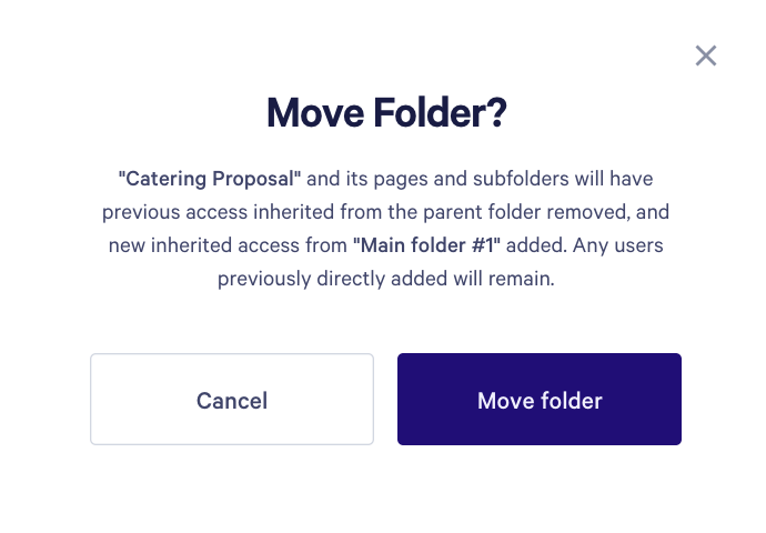 Note: anyone who has been directly added to a folder or page keeps their access separately to any permissions inherited.