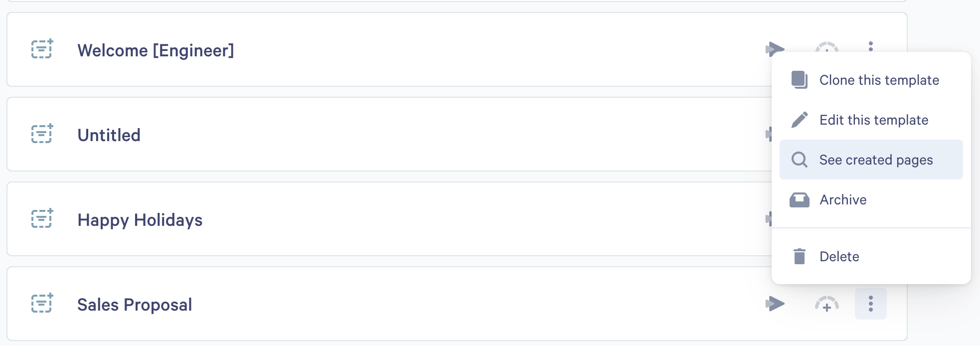 This means that Blueprints no longer appear as a single “container” in your dashboard. Instead, you’ll see the template in your Templates area, and all created pages will appear as individual pages, just like Zoho and Pipedrive.