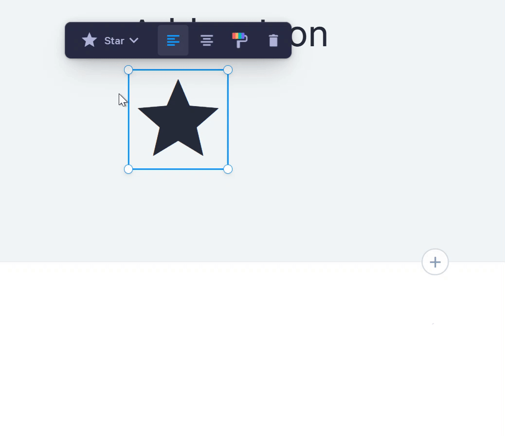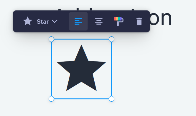 The icon will automatically add to your page. From there you will want to style the icon. In the below example, we start with a star icon but click on it to bring up the context menu to modify icon type, alignment, style, or delete.