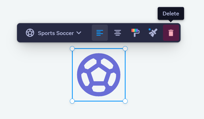 If you need to remove icon, click on it to bring up the toolbar. Click the trash can icon to delete.