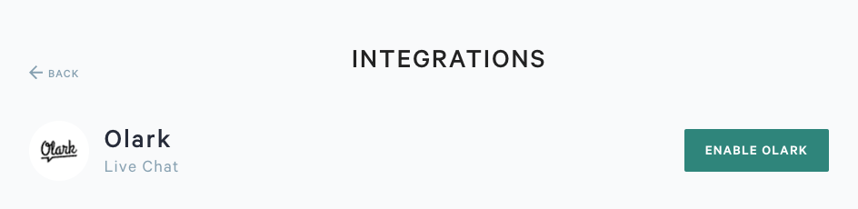 Step 3. On the integration page, choose Olark and then click Enable Olark.